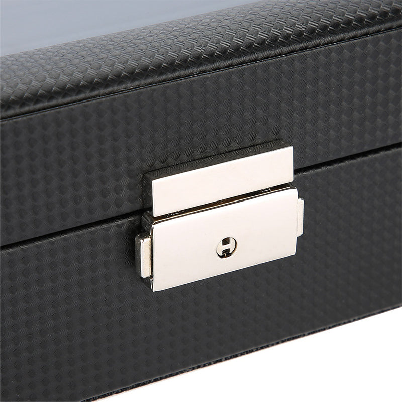 Cette boîte 6 montres est un accessoire indispensable pour les propriétaires de tocantes qui souhaitent un endroit sûr et luxueux pour les ranger. Fabriqué avec une base en MDF, ce coffret est recouvert de simili-cuir imitation carbone. Il arbore fièrement un look moderne et élégant. L’espace intérieur est divisé en 6 compartiments individuels, puis doublé d’une couche de feutre doux, c’est une matière extrêmement confortable qui saura protéger et prendre soin de vos montres.