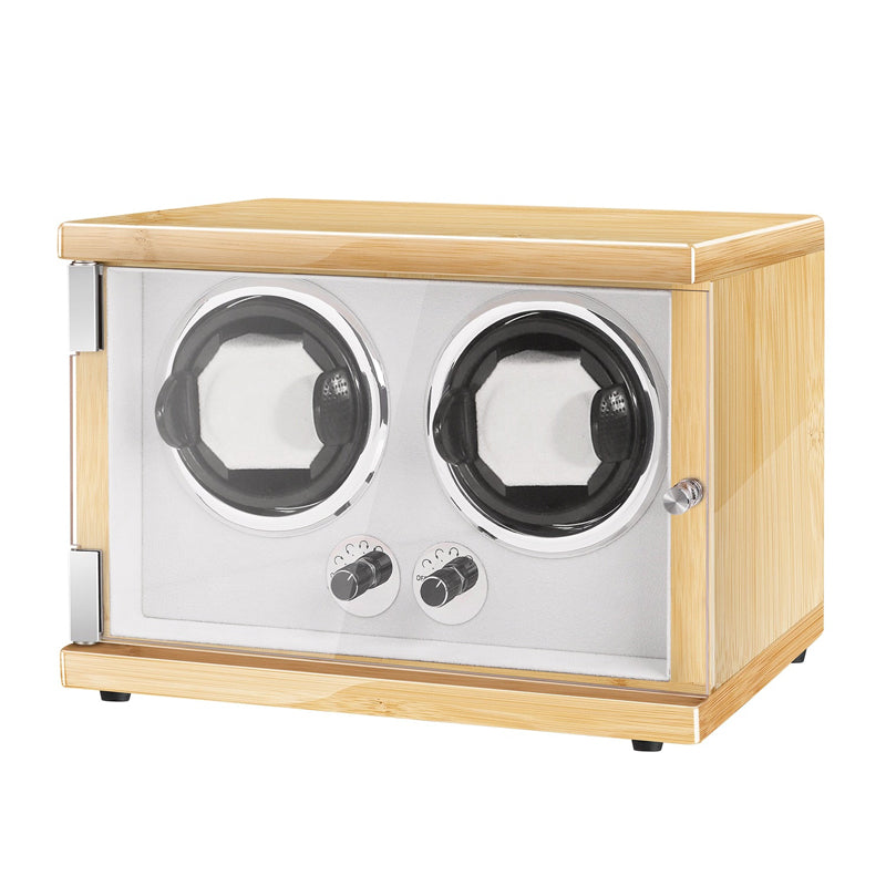 Remontez facilement et avec élégance vos tocantes grâce à ce tourne-montre pour 2 montres automatiques. Conçu en bois massif, ce remontoir est solide et robuste, il protégera parfaitement vos montres. La rotation lente permet de mettre en mouvement le mécanisme de remontage, c’est très pratique lorsque vous avez des montres automatiques que vous ne portez pas pendant plusieurs jours de suite ; ce tourne-montre vous évitera de devoir remonter le mécanisme manuellement.